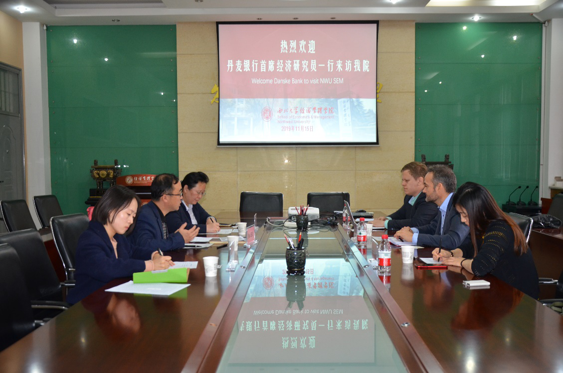 此次座谈围绕我国西部大开发进程及西安作为一带一路核心城市,其经济发展水平、投资现状和机遇等话题展开。师博副院长首先对丹麦银行经济研究团队的访问表示欢迎,并就习近平总书记对陕西提出的“追赶超越”科学定位及陕西正在大力发展枢纽经济、门户经济和流动经济、扩大对外开放的战略导向进行了详细解读。丹麦银行首席经济研究员Allan von Mehren先生介绍,丹麦银行以为客户实现梦想为宗旨,在中国西部经济逐渐崛起的大环境下,希望积极了解研究西部大开发战略,探索中西部地区经济发展驱动及潜力并为其北欧客户在中国尤其是西部地区的投资方案提供专业的指导意见。会上,双方还就西部地区的人才吸引政策、西部大开发战略实施二十周年后的新格局及经济增长质量测度方法等问题进行了交流探讨。