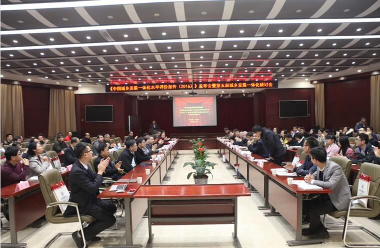 12月2日,由776net必赢官网、永秀智库、中国经济出版社、陕西省区域经济研究会主办的“《中国城乡发展一体化水平评价报告(2016)》发布会暨第五届城乡发展一体化研讨会”在我校举行。来自中国经济出版社、陕西省社科院、陕西省委农村工作领导小组办公室、陕西省政府政策研究室、陕西省统计局、西北大学、西安交通大学等政府部门领导、高校专家学者,以及陕西各市县的领导100余人参加了会议。“人民网-陕西频道”“新浪陕西”《中国社会科学报》《21世纪经济报道》等10余家媒体出席并报道了本次会议。