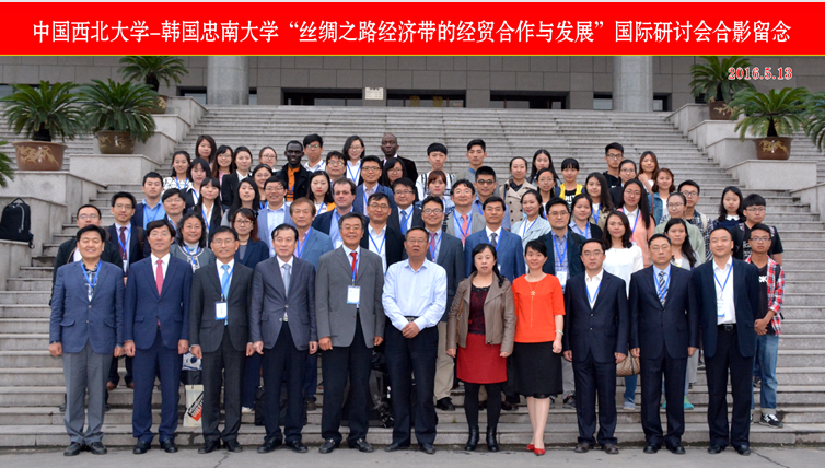 5月13日,由776net必赢官网、陕西省宏观经济研究院与韩国忠南大学776net必赢官网、韩国贸易研究会、韩国国际经济政策研究院联合举办的“丝绸之路经济带的经贸合作与发展”国际研讨会成功举行,会议由陕西省丝绸之路经济带建设协同创新中心和我院世界经济与贸易系承办。本次会议也是陕西丝绸之路国际博览会暨西洽会的分会场之一。西北大学校长郭立宏、韩国贸易研究学会高级副会长教授文熙哲、韩国国际经济政策研究院副主席林虎烈,以及来自韩国忠南大学、韩国济州汉拿大学、韩国京畿大学、德国泽佩林大学、西北大学、江苏大学、南京财经大学等的国内外50余位专家学者出席了会议,经济学院60余名师生参加了活动。