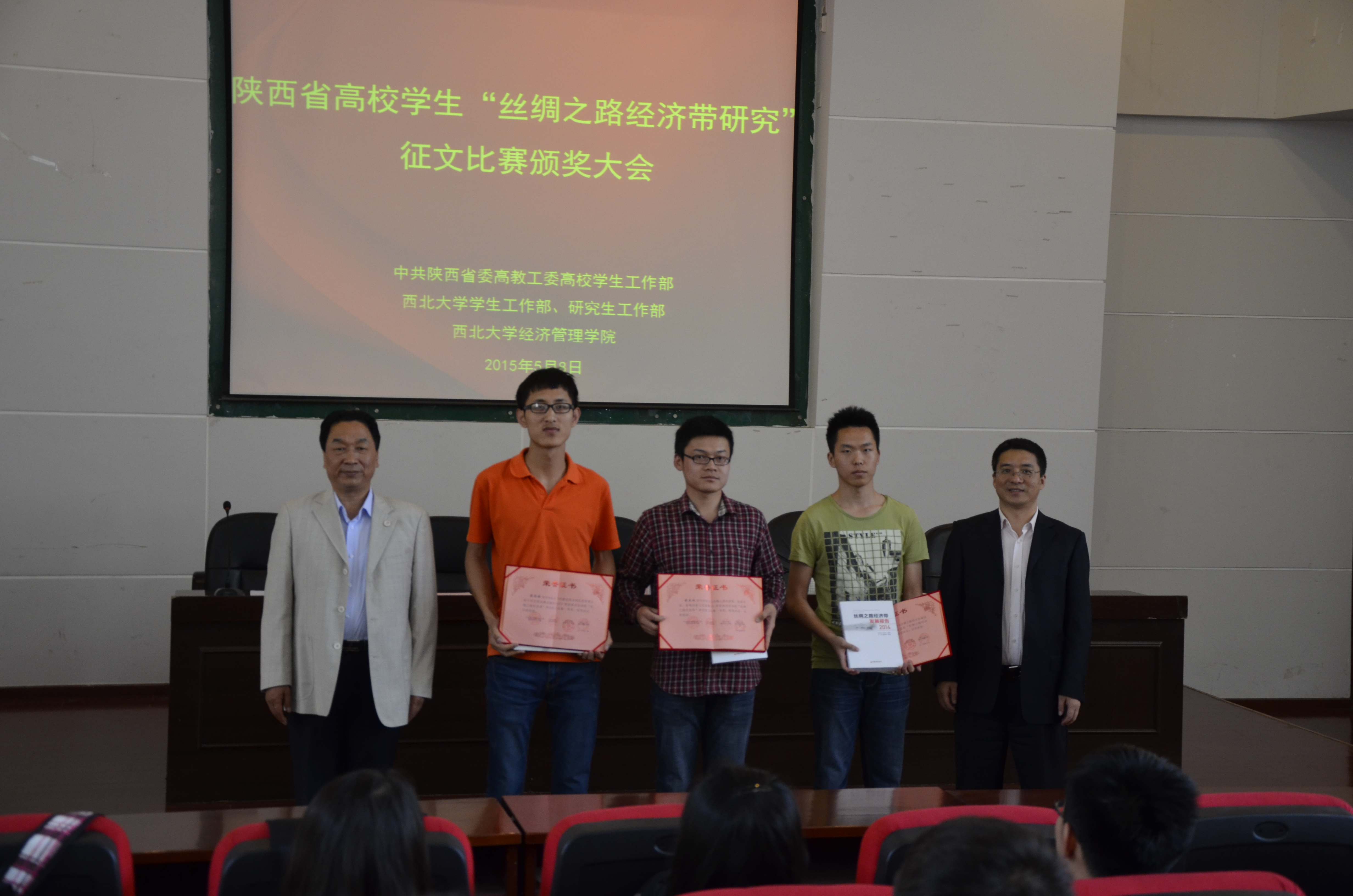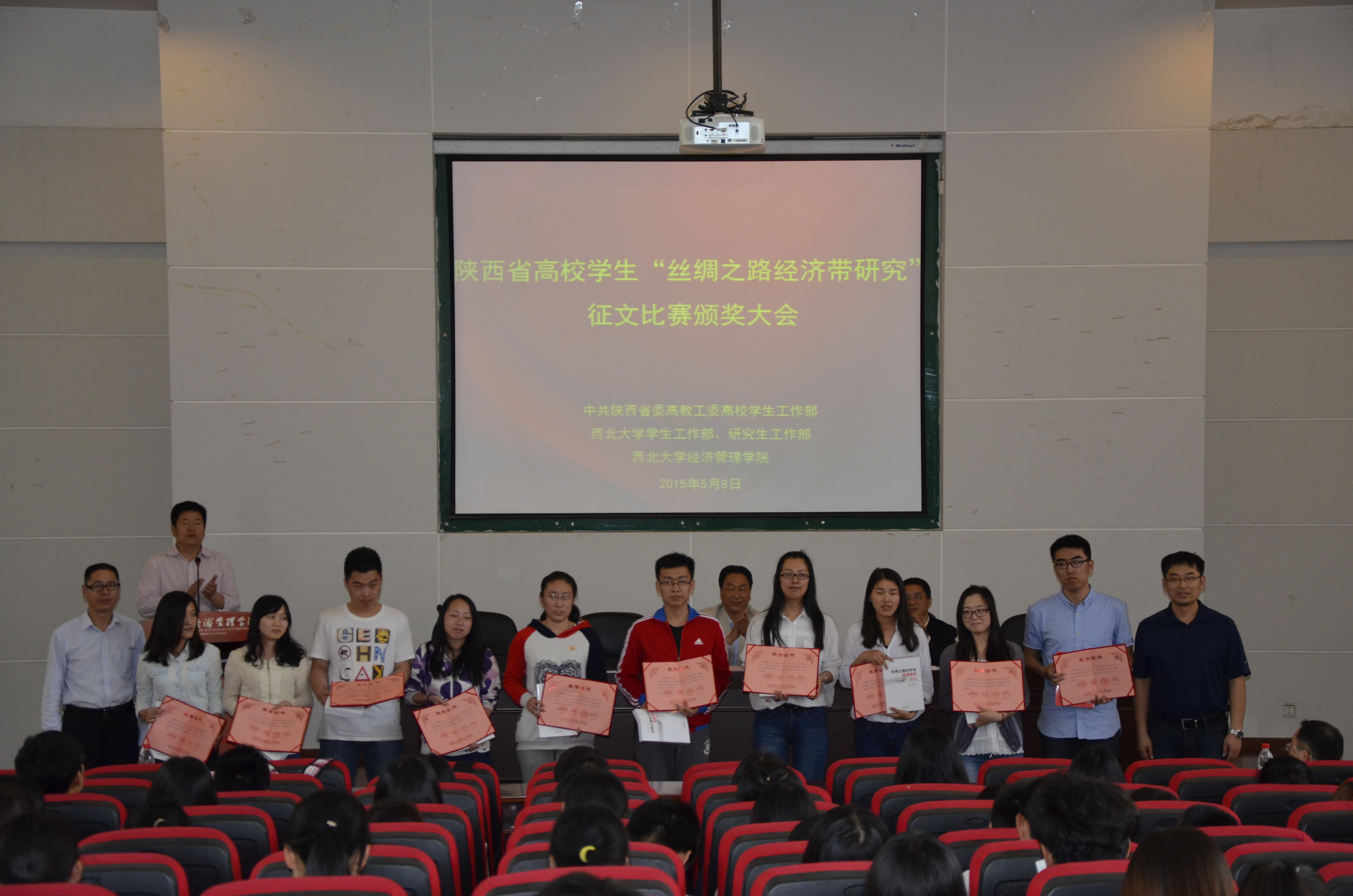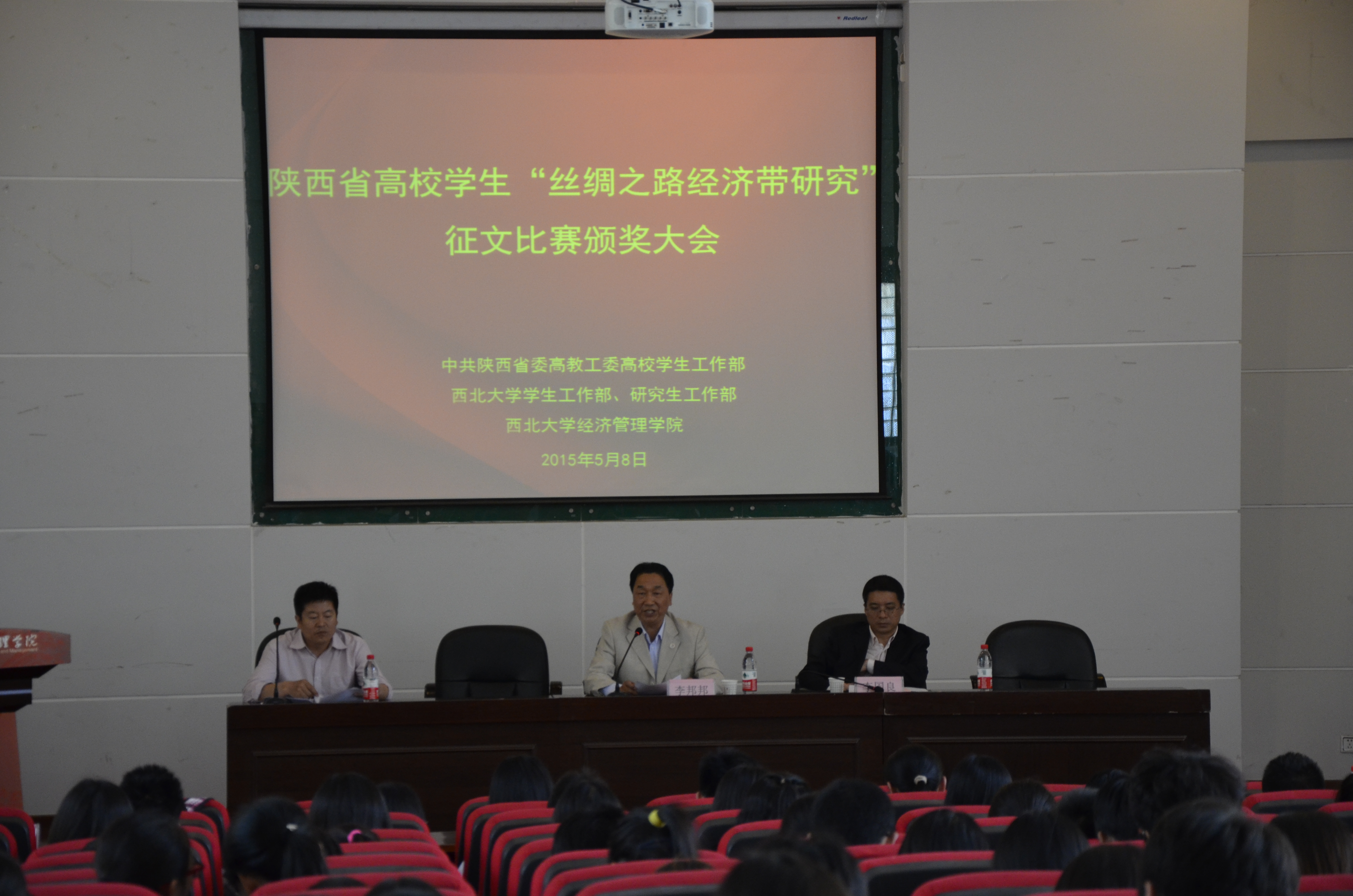 5月8日下午,由中共陕西省委高教工委高校学生工作部、西北大学学生工作部、西北大学研究生工作部、776net必赢官网主办,776net必赢官网具体承办的全省高校学生“丝绸之路经济带研究”征文比赛颁奖大会在金海报告厅隆重举行,校党委常委、纪委书记李邦邦出席大会,校学生工作部、研究生院、776net必赢官网相关负责人及师生代表共计250余人参加了大会。