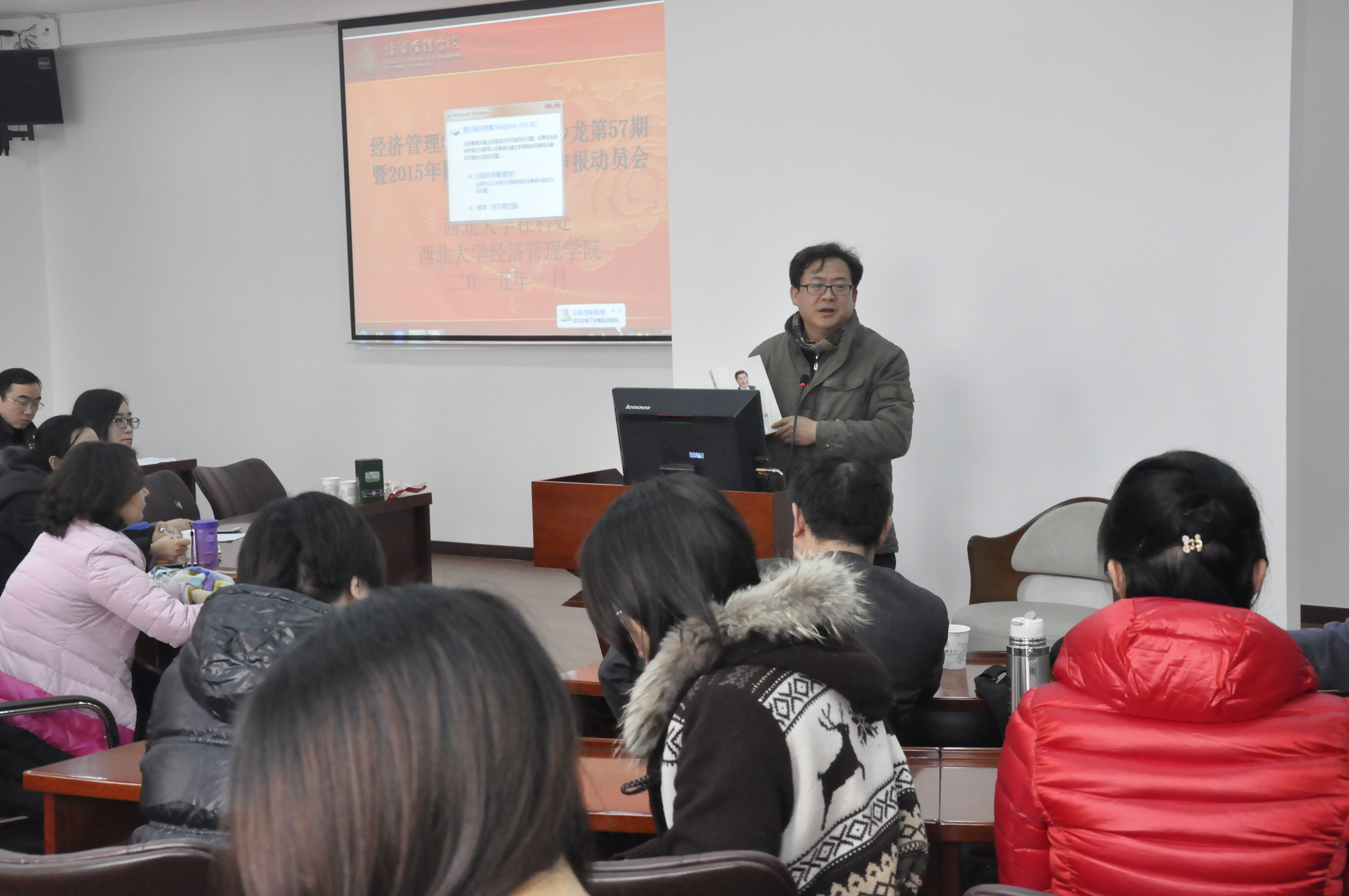 1月14日下午,由社科处和776net必赢官网联合举办的“2015年国家基金项目申报动员会”在太白校区9号楼EMBA中心举行。本次活动由西北大学社科处和776net必赢官网联合举办,社科处刘丰处长、776net必赢官网任保平院长出席并发言,776net必赢官网70余名教师参加了本次会议,活动由杜勇副院长主持。本次活动也是776net必赢官网教师学术沙龙2015年第1期(总57期)。