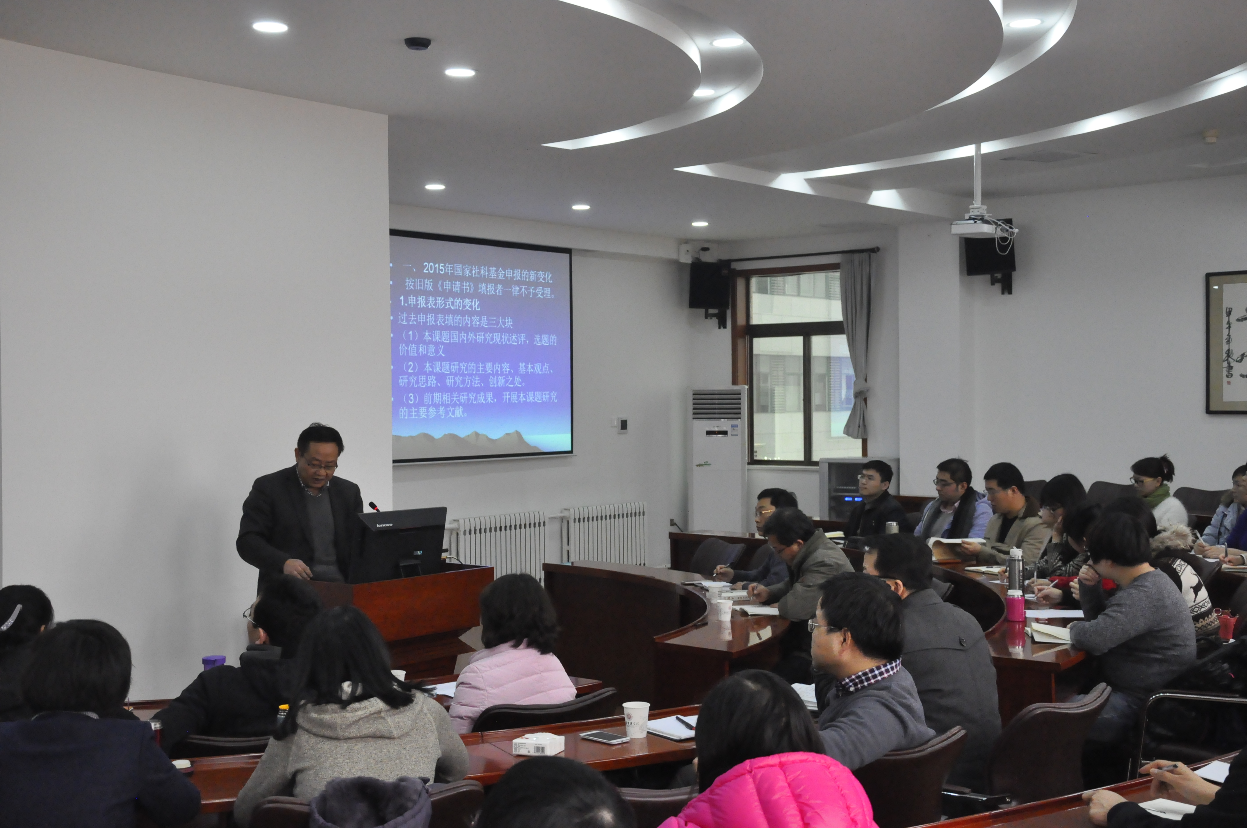 刘丰处长首先对776net必赢官网在2015年取得的丰硕科研成果表示祝贺,然后分析了近年来社科基金申报的注意事项。刘丰处长强调申报国家社科基金需要以课题指南为基础,但必须紧扣国家宏观经济、政治的各项方针,以顶天立地的精神展开科学研究。最后刘丰处长推荐大家阅读和学习《习近平谈治国理政》,并激励各位老师通过坚持不懈的奋斗必将迎来成功。