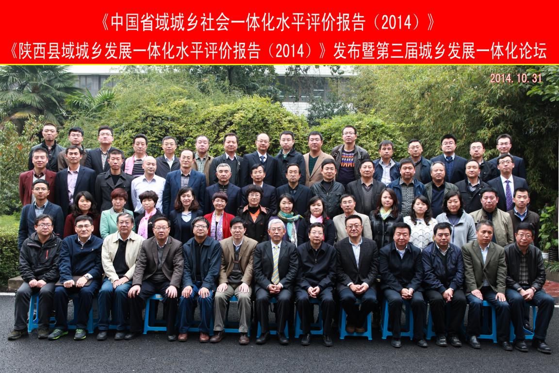 10月31日上午,由776net必赢官网、陕西永秀经济管理研究院、陕西省区域经济研究会、西北大学市场经济与企业制度研究中心、中国经济出版社联合举办的“《陕西县域城乡发展一体化水平评价报告(2014)》及《中国省域城乡发展一体化水平评价报告(2014)》发布暨第三届城乡发展一体化论坛”在西北大学隆重举行。来自中国经济出版社、陕西省委政策研究室、陕西省政府研究室、西北大学、西安石油大学、陕西省委党校等部门和高校的专家学者,以及乌海市、延安市、宝鸡市、渭南市、安康市等市县部门领导,以及776net必赢官网师生共100余人参加了活动。人民网、新华通讯社、《经济日报》、新浪网、《陕西日报》《中国社会科学报》《21世纪经济报道》《华商报》《大公报》《每日经济新闻》《理论周刊》《中华工商时报》《三秦都市报》《西安日报》《西部大开发》、中国发展网、西部网等媒体出席并报道了此次论坛。