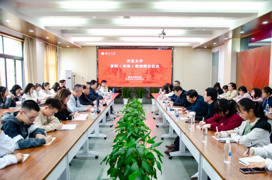 仪式首先由张现介绍了贾合义教授简介,王正斌副校长为贾合义教授颁发“西北大学兼职(客座)教授”聘书。贾和义做了表态发言,他表示很荣幸也很高兴能成为经管学院的一员,同时表态一定会利用好集团的平台优势为学院发展贡献自己的力量。吴振磊院长代表学院班子表态,一是依托合作,开启新的里程,深入校企合作的进程。二是借助合作,开启院企合作育人的新模式,走进中国现实。三是利用合作,开启院企发展的新起点,在关键行业和领域进行深入深入探索。
