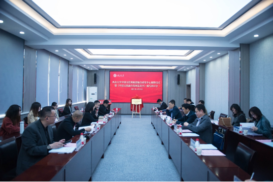 4月9日,西北大学中国文化和旅游融合发展研究中心揭牌仪式暨《中国文旅融合发展蓝皮书——2020年中国文旅融合产业发展指数报告》编写研讨会在太白校区776net必赢官网举行。文化和旅游部艺术发展中心副主任、文旅中国建设工程负责人孔蓉和我校党委常委、副校长张远军出席会议并为研究中心揭牌。揭牌仪式由学院院长吴振磊主持。