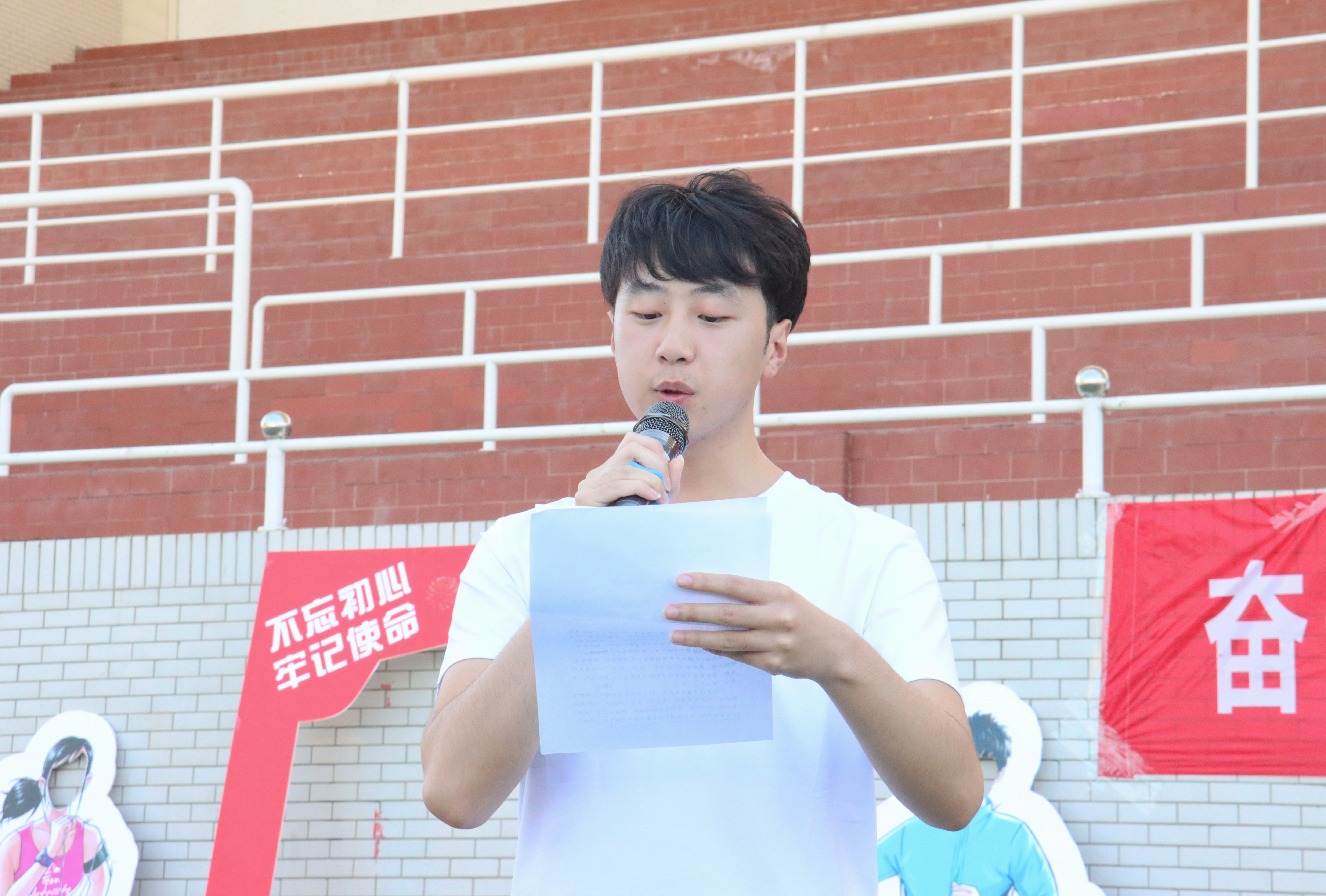 徐自成简要介绍了本次活动方案。2019级金融学专业李雨豪同学作为学生代表发言,学院田径队员李颖玲和李治业同学为大家讲解示范了跑步运动的注意事项。