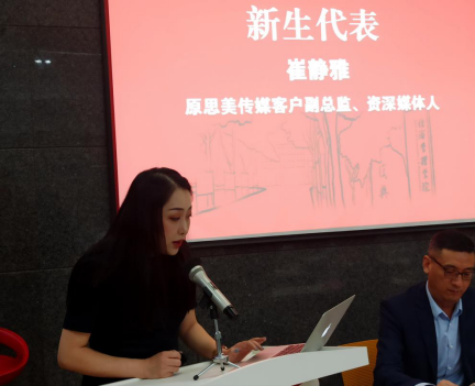 典礼在庄严的国歌声中拉开帷幕。资深媒体人崔静雅同学代表新生上台发言。她表示十分珍惜这一次宝贵的校园生活,希望与同学们一起成长,共达理想。陕西环保产业集团有限责任公司综合办公室王军敏主任作为在校生代表上台发言。从精英发展项目考入西北大学MBA,他以自己亲身经历告诉各位新同学们:认真把握好在校时间,不要缺席任何一个课堂,积极参与每一次活动,珍惜身边每一位伙伴。