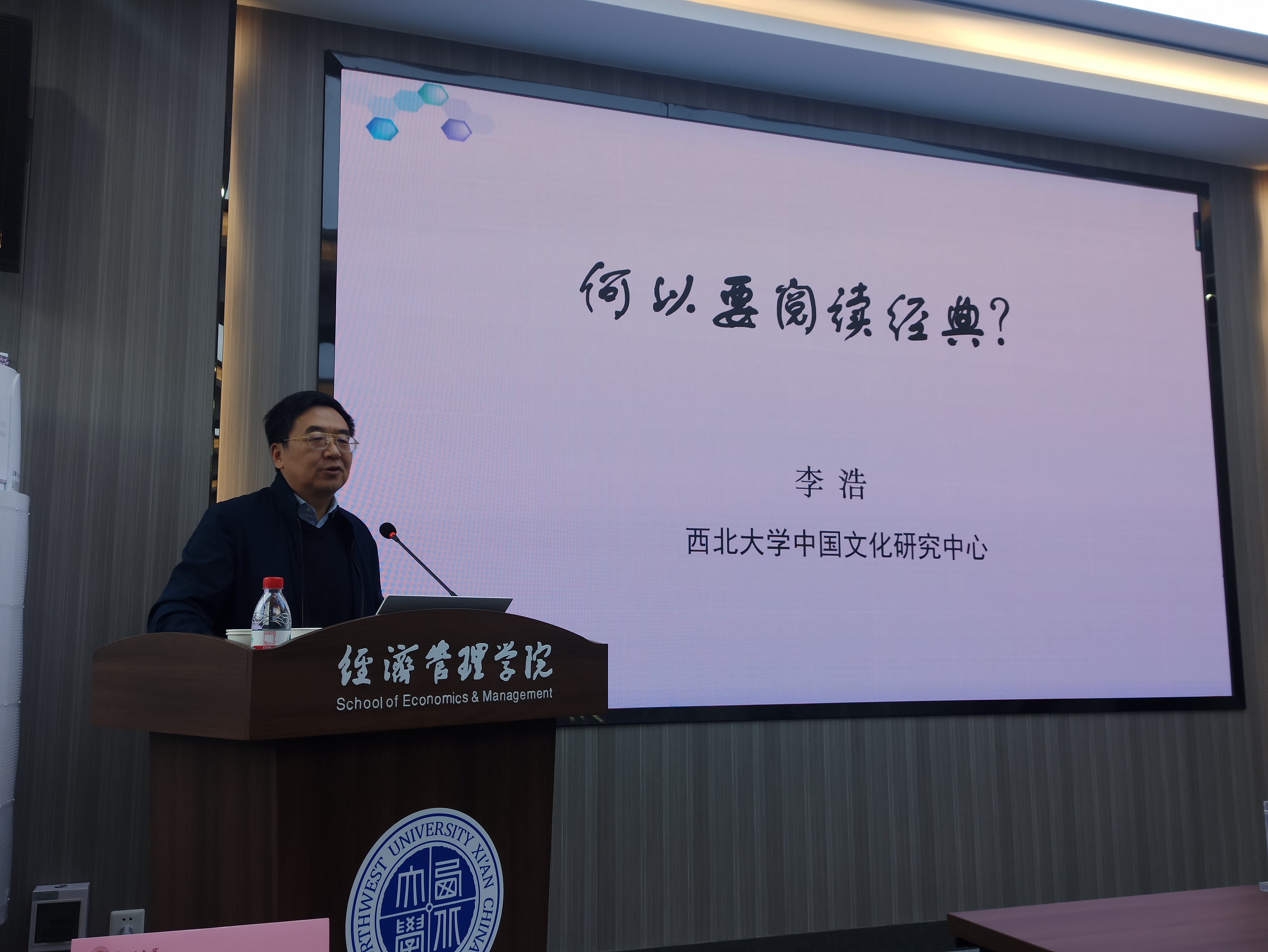 10月17日,郭立宏为省政协常委、省发展改革委副主任刘迎军颁发了我校兼职教授及MBA/EMBA校外导师聘书。聘任仪式结束后,刘迎军作了“当前经济形势及陕西高质量发展路径选择”的专题报告。我校中国文化研究中心主任、教育部“长江学者”特聘教授李浩作了“何以要阅读经典”的专题讲座。