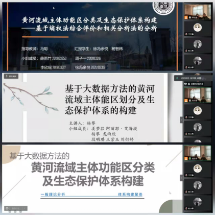 3月29日至4月1日,各小组从“西北地区经济高质量发展潜力分析”、“以互联网为基础的数字技术在疫情防控中的作用和暴露出的问题分析”和“基于大数据方法的黄河流域主题功能区分类及生态保护体系构建”三个课题中任选一题开展工作。各小组同学在老师的悉心指导下,经过紧张的小组讨论、文献梳理、数据搜集、方法学习、分析研究等实践环节,借助大数据技术或者多元统计、时序分析、空间探索分析、综合评价等方法,高质量地完成了比赛作品。