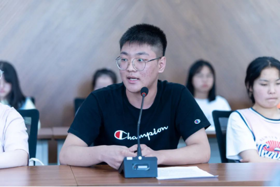 三位少数民族学生代表做了交流发言。2020级财政学专业藏族学生卓玛曲措回忆了她过去上学时期经历的困难,感慨西藏发生了翻天覆地的变化。她感激地说:“这些都离不开我们党的好政策,离不开党中央对各族群众的深切关怀和对民族工作的高度重视,非常感谢党和国家让我的家乡变得越来越好。”2020级信管专业维吾尔族同学买合甫来提讲到:“经过各方面艰辛努力,新疆经济社会发展和民生改善取得了前所未有的成就,各族群众的获得感、幸福感、安全感不断增强。这些都得益于党的领导,得益于党的民族好政策。”2020级金融学满族学生赵禹涵热情地诉说了近年来他家乡发生的巨大变化,以及他对铸牢中华民族共同体意识的理解,决心做民族团结的模范代表。