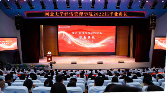 2022年6月26日,776net必赢官网在长安校区大学生活动中心报告厅举行2022届学生毕业典礼。西安米旗食品集团总裁、776net必赢官网1987级院友冯岩,学院全体党政班子成员,各系主任,教师代表,家长代表,全体辅导员及2022届全体毕业生参加典礼。