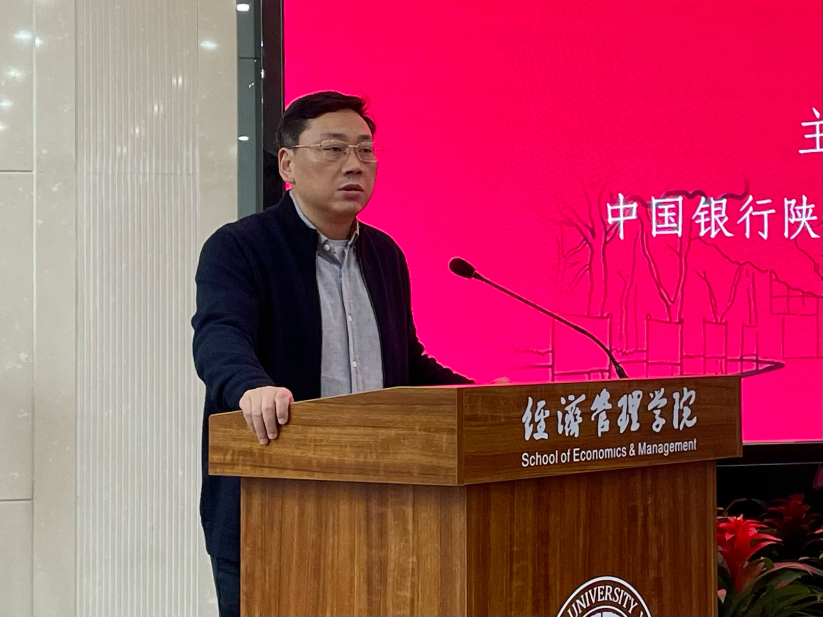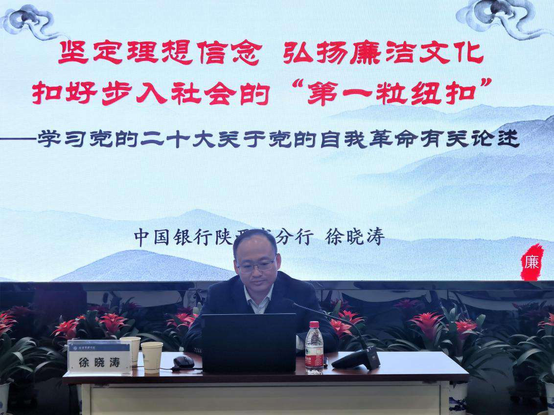 为深入学习贯彻党的二十大精神,深化学院师生对习近平总书记关于“党的自我革命”重要论述的认识,切实加强基层组织建设,增强大学生思想政治教育成效,11月9日,中国银行陕西省分行纪委书记徐晓涛应邀到校,以《坚定理想信念,弘扬廉洁文化,扣好步入社会的“第一粒纽扣”》为题,为学院2022级金融学专业全体学生作了专题讲座,活动由学院党委书记杜勇主持。