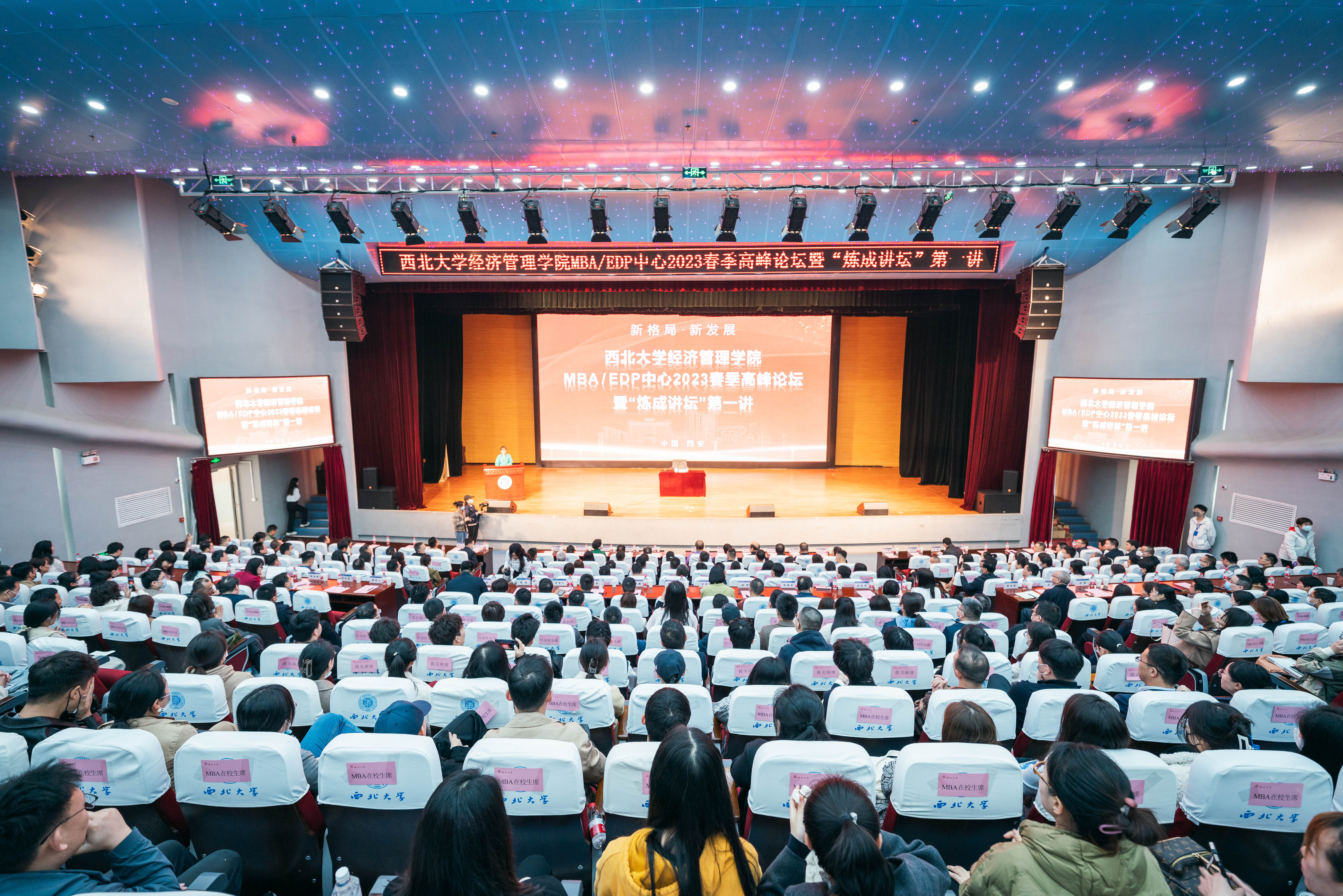 西北大学杰出校友、著名经济学家、清华大学文化经济研究院院长魏杰教授,我校校长郭立宏,校党委常委、副校长张远军,陕鼓集团党委书记、董事长李宏安,爱菊粮油工业集团党委书记、董事长贾合义,陕西建工集团、中煤科工西安研究院、陕旅集团、西旅集团等企业方代表及历往届校友代表应邀出席了活动。经管学院党政领导班子成员,MBA/EDP中心负责人,教师代表,经管院学生共计600余人参加了活动。论坛由马莉莉院长主持。