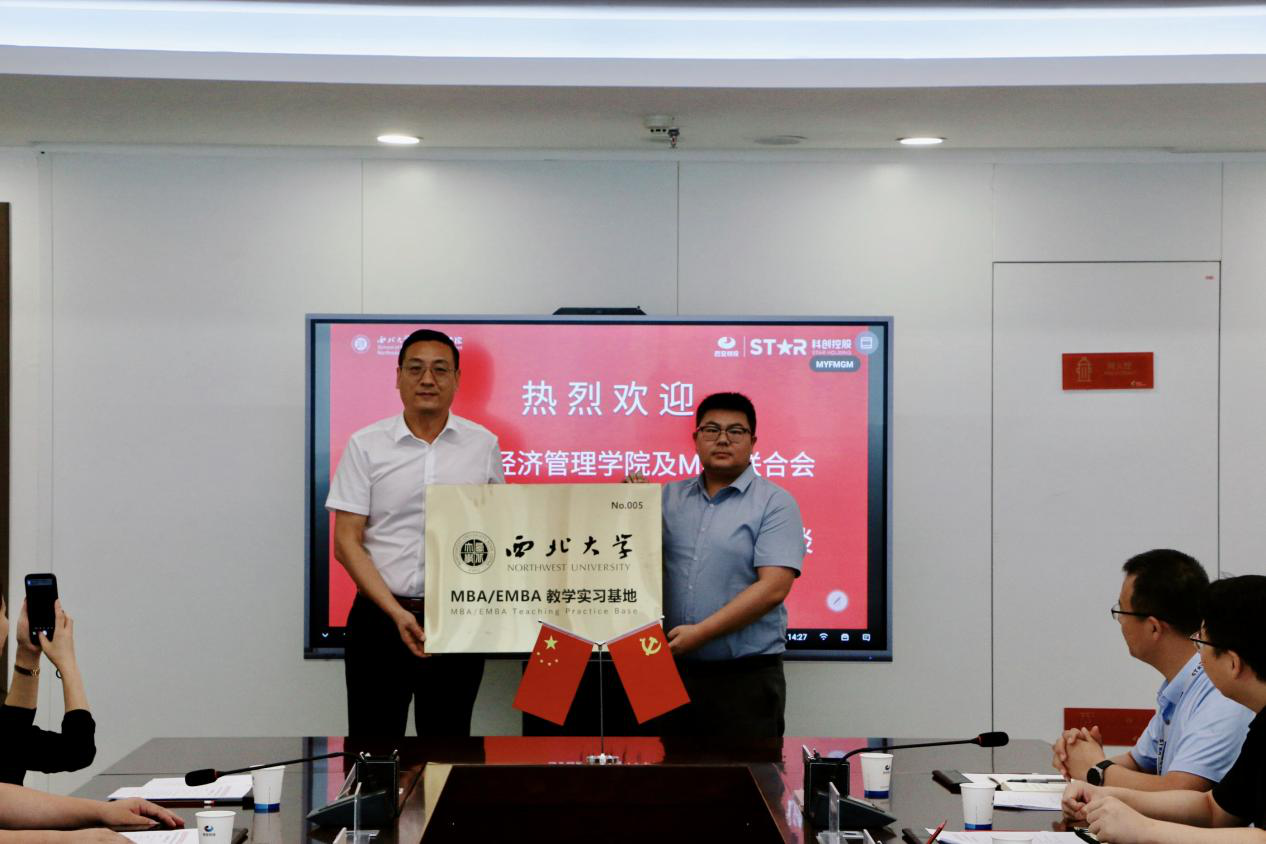 授牌仪式上,西安航投科创控股集团被授予“776net必赢官网学生实习实践教育基地”、“西北大学MBA/EMBA教学实习基地”,执行董事辛昱辰、总经理顾元吉被聘为“西北大学MBA联合会校外创业导师”。MBA校友企业西安航投星火科技孵化有限公司、西安航投启创人才科技有限公司被授予“西安航投科创控股集团混改示范企业”。
