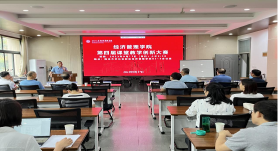 为贯彻党的二十大精神,学习贯彻习近平总书记关于教育的重要论述,坚持立德树人根本任务,深入推进课堂教学改革,引导与鼓励广大教师创新教学理念,改革教学方法,提升教学效果,9月17日,学院成功举办第四届课堂教学创新大赛。学院45周岁以下青年教师共29人参赛,比赛分经济学和管理学两组进行。王连堂教授、惠宁教授、赵景峰教授、郝索教授、吴丰华教授、韩少真副教授担任评委。参赛的全体青年教师出席了活动,学院党委书记杜勇发表赛前动员讲话,开幕式由副院长李辉主持。经过紧张激烈的比赛,最终决出一等奖5名、二等奖6名、三等奖8名和优秀奖10名。