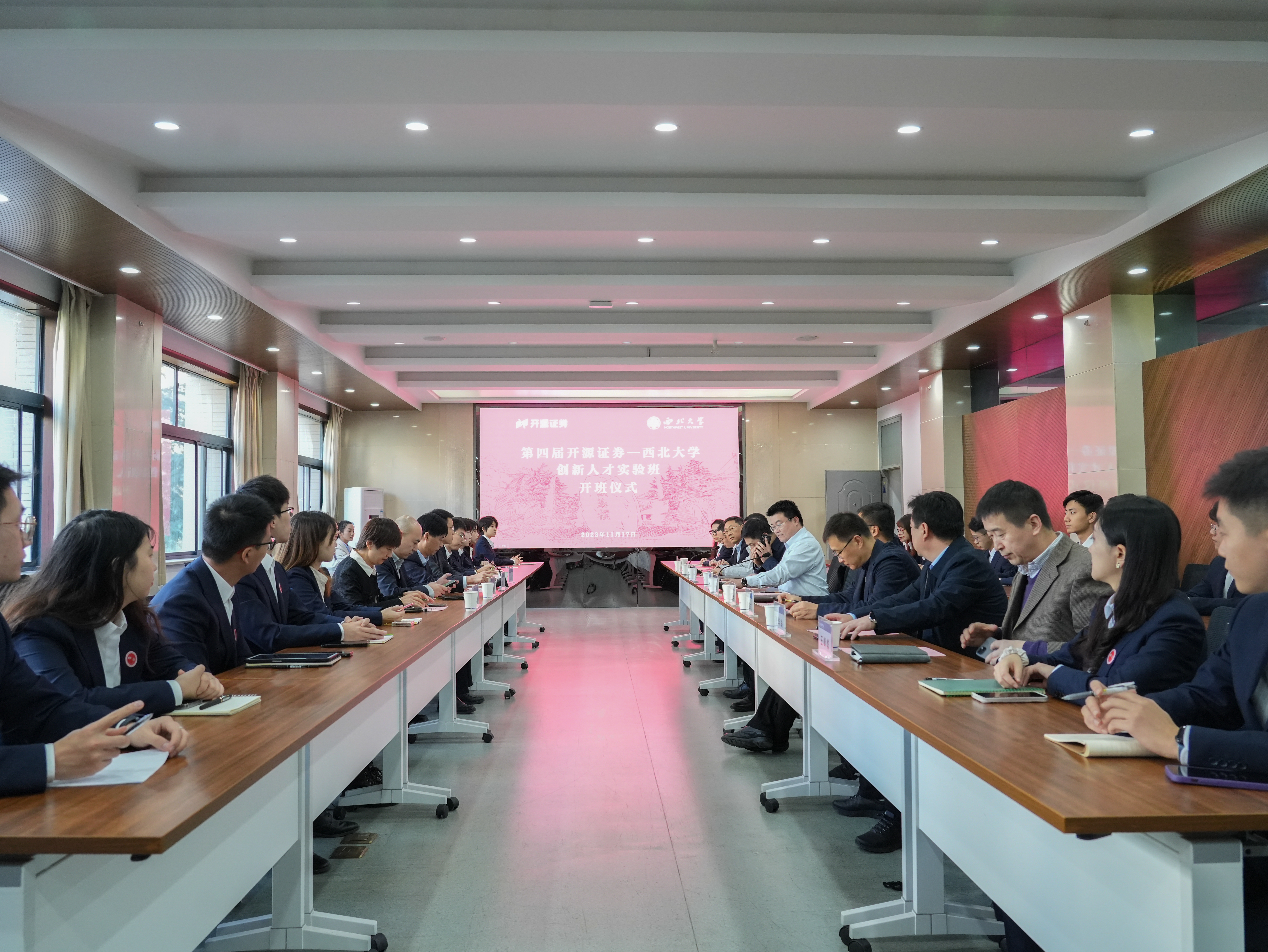 11月17日,第四届“开源证券-西北大学”创新人才实验班开班仪式在长安校区举行。开源证券股份有限公司党委副书记李晓锋,总经理助理张国松、李青,校党委常委、副校长吴振磊出席仪式。实验班全体学员,开源证券股份有限公司人力资源部副总经理刘云,我校研工部部长李军,国内处处长崔延力,学工部副部长赵金哲,教务处副处长李力,学院党委副书记徐自成,副院长李辉、张华岭,金融学系副主任王峰虎参加了开班仪式。开班仪式由学院党委书记杜勇主持。