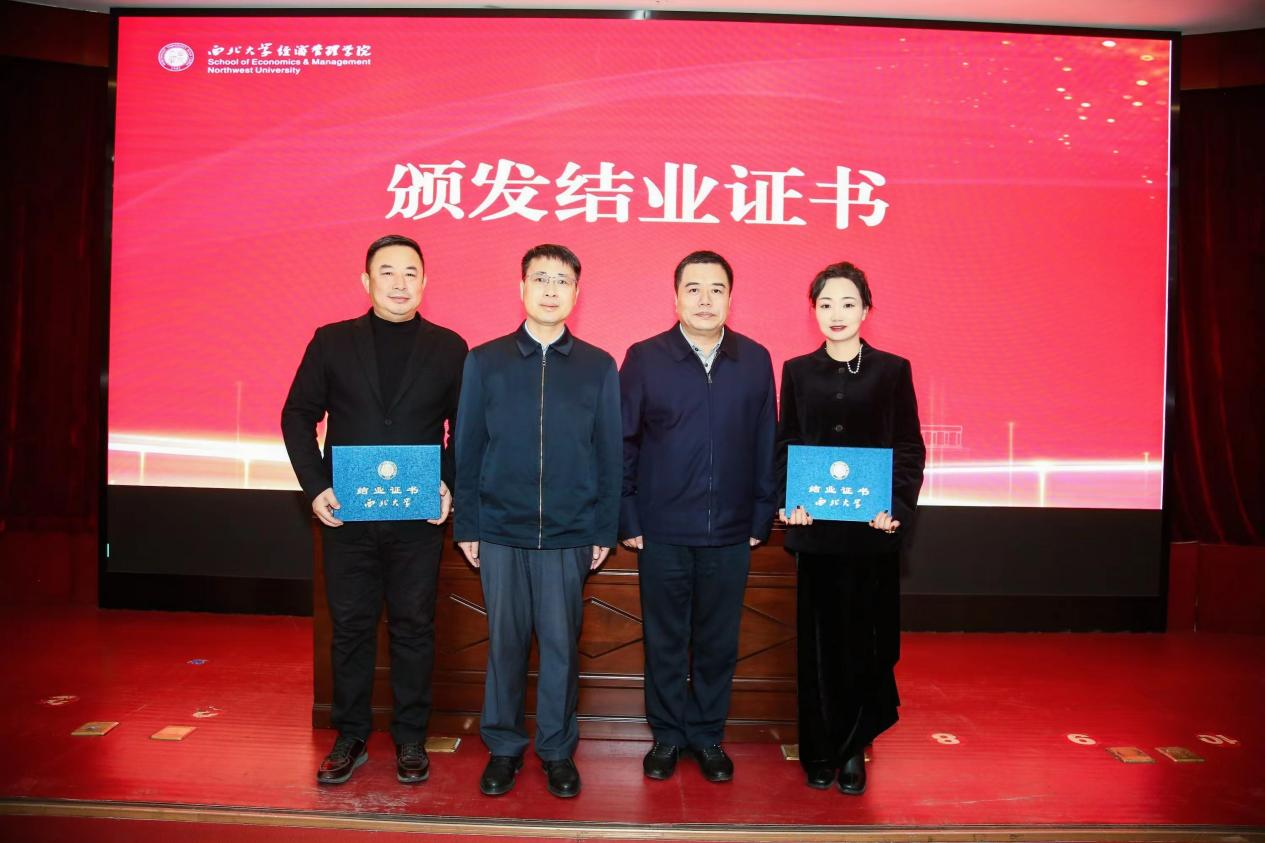 12月17日下午,西北大学与中共市委统战部联合举办的西安市第一期新生代民营企业家领军人才研修班结业典礼在太白校区萃园报告厅举行。中共西安市委统战部常务副部长张少纯,西北大学副校长(主持行政工作)孙庆伟,国内合作与校友工作处处长崔延力及研修班全体学员共同参加了典礼。典礼由我院党委书记杜勇主持。
