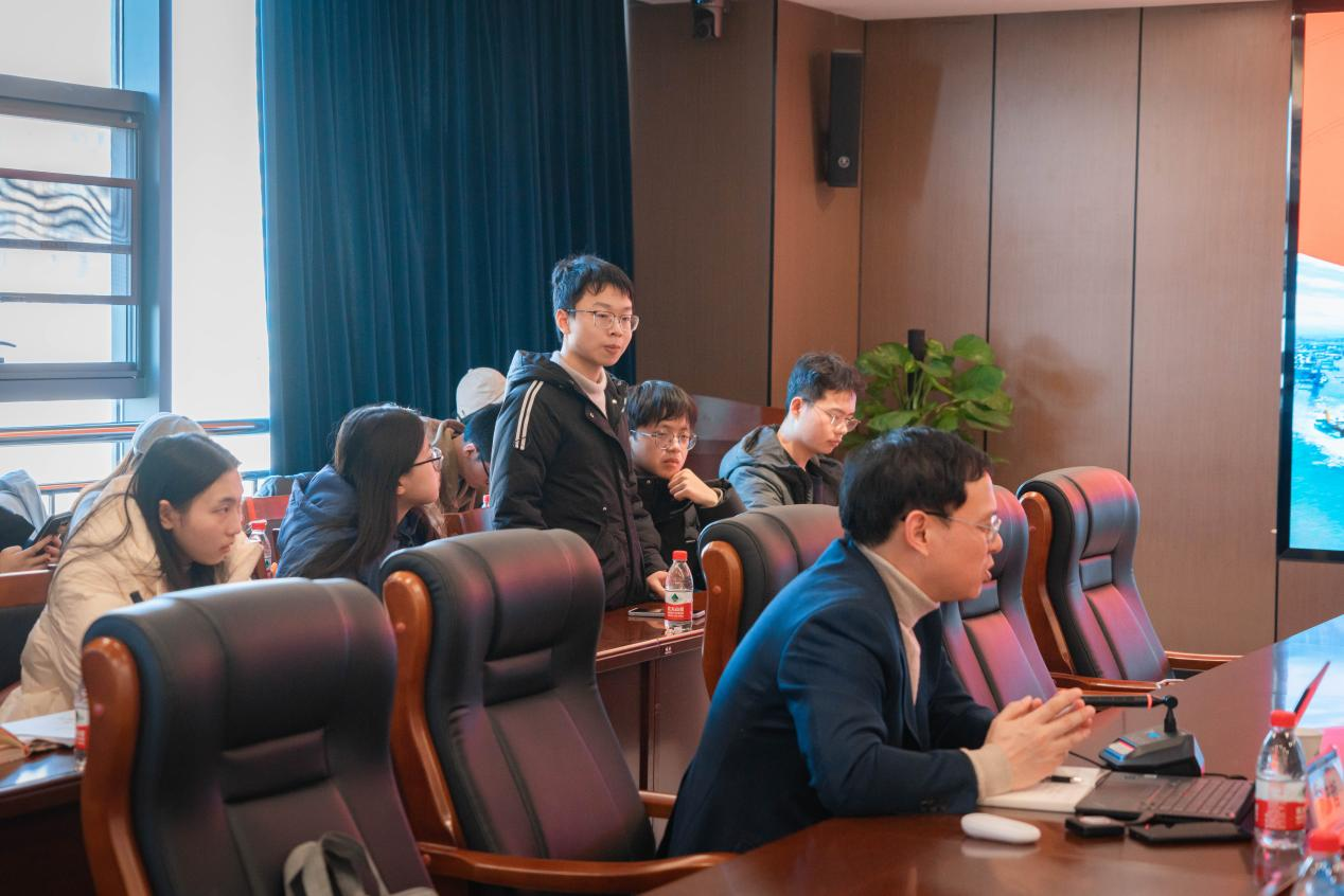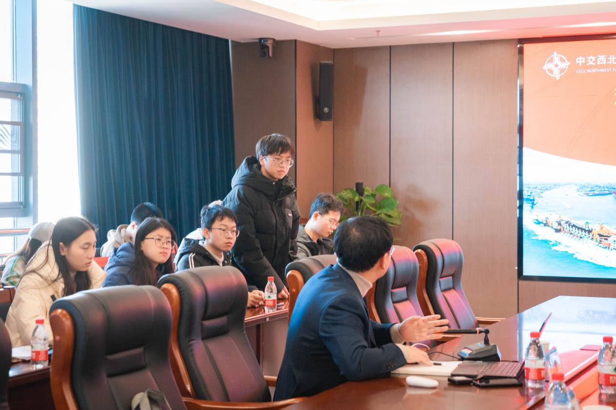 参观结束后,我系师生前往共享中心会议室,与中交西北财务共享中心展开深入交流。我系师生观看了中交西北财务共享中心的宣传片,从建设历程、建设成果两大板块对共享中心再次进行深入了解。巩经理围绕企共享中心基本情况、信息系统架构运行模式、数智化建设、价值赋能等方面进行了详细介绍。潘颖主任介绍了776net必赢官网和会计学系的基本情况,并围绕人才培养、科学研究、社会服务等方面提出产学研合作的内容。最后,中交西北财务共享中心与会计学系学生进行了互动交流,巩经理就学生在复合型会计人才成长、信息技术和数据科学知识学习、实习实践、信息安全等方面提出的问题进行了详细解答。