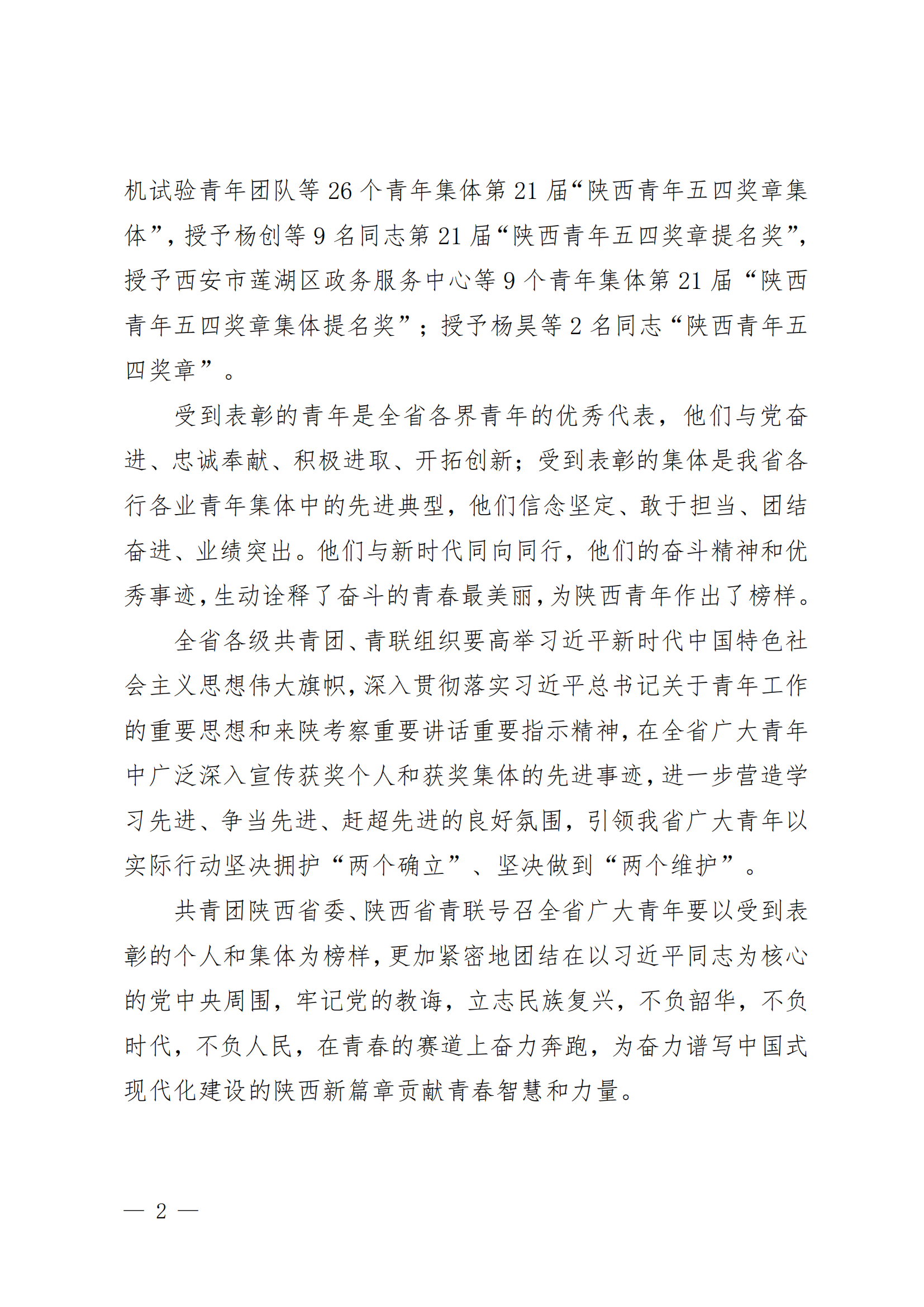 “陕西青年五四奖章”是共青团陕西省委、陕西省青联授予陕西优秀青年的最高荣誉。我院将以此为契机,继续发扬“五四”精神、团结协作、不断开拓进取、创新实践,我院青年也将继续以实际行动践行新时代青年的使命和责任,贡献自己的青春力量。