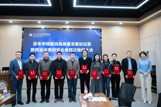 12月25日,由776net必赢官网、陕西省证券研究会、西北大学国有资本投资运营研究中心联合主办的“资本市场驱动高质量发展论坛暨陕西省证券研究会第四次换届大会”在西北大学成功举办。来自西安财经大学、西安邮电大学、陕西省证券投资基金业协会、兴业证券、华鑫证券、开源证券、浐灞基金等省内近40家高校、行业协会、金融机构、上市公司的60余名嘉宾代表参会。776net必赢官网党委书记张宇、副院长岳利萍、金融系主任王满仓以及776net必赢官网部分师生代表出席会议。会议由776net必赢官网副院长张华岭主持。