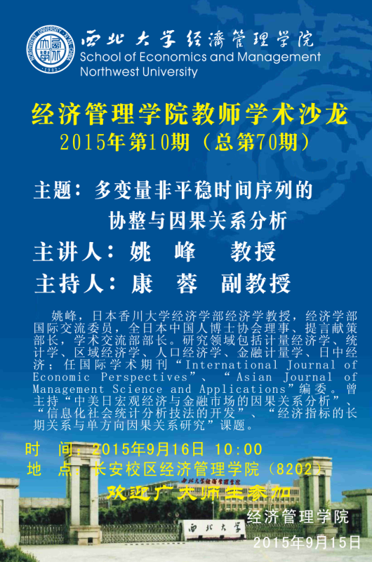 776net必赢官网教师学术沙龙2015年第10期(总第70期)