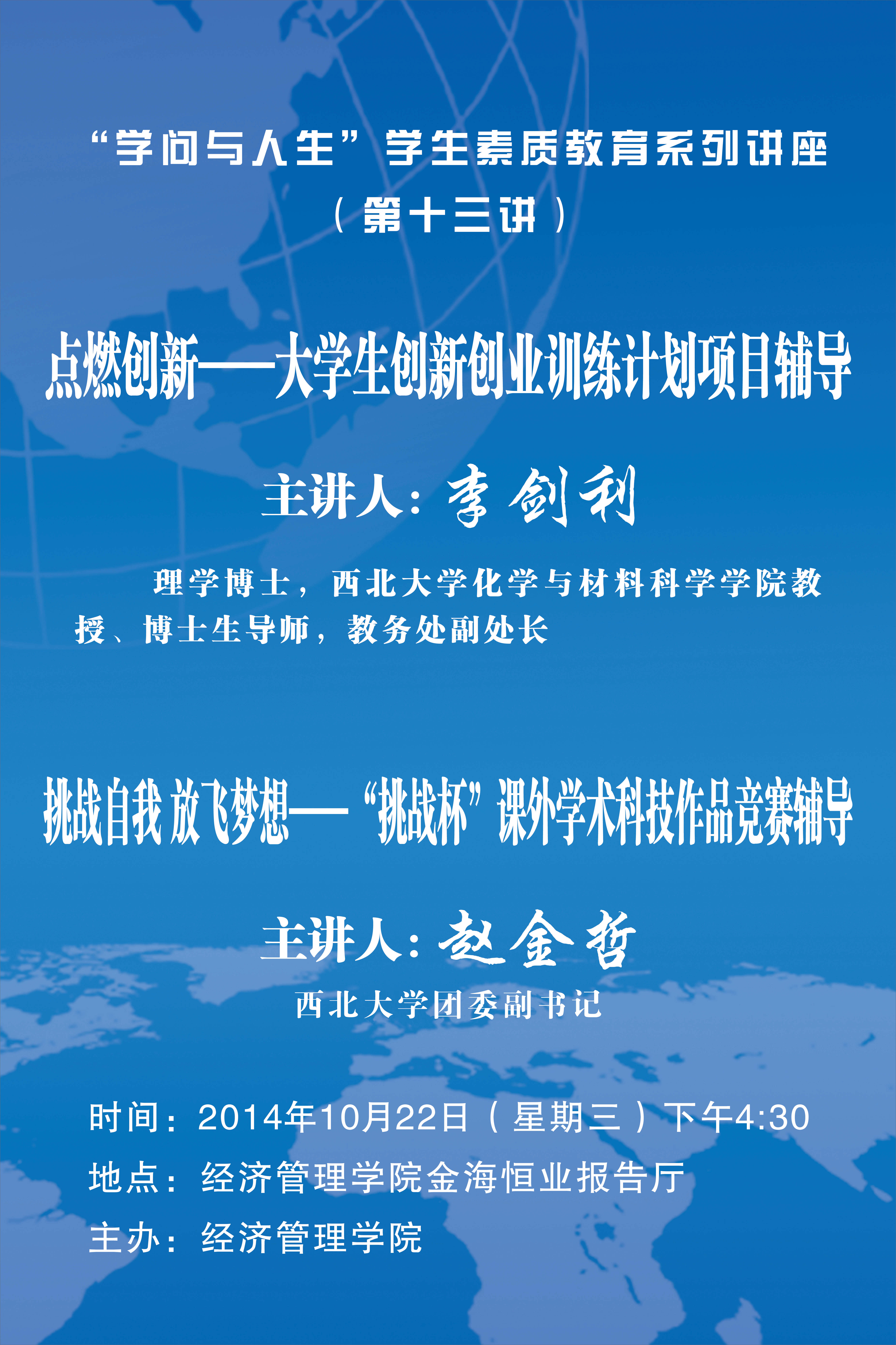 “学问与人生”学生素质教育系列讲座(第十三讲)公告