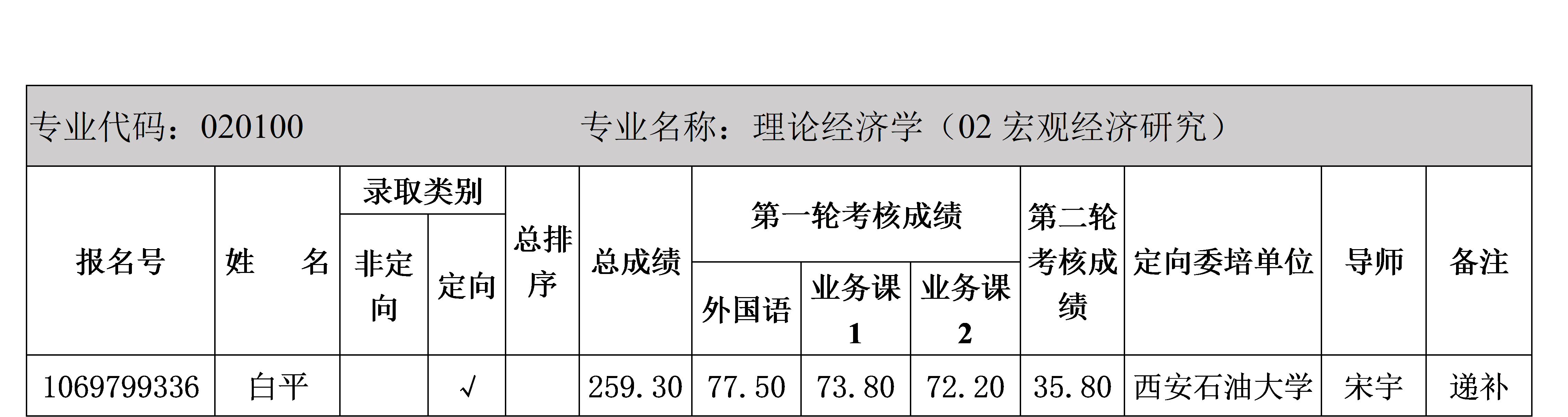 根据《西北大学2020年博士研究生招生录取办法》和《776net必赢官网2020年博士研究生招生录取工作方案》的要求,因理论经济学宏观经济研究方向有1位拟录取考生自愿放弃,现递补1名,公示如下: