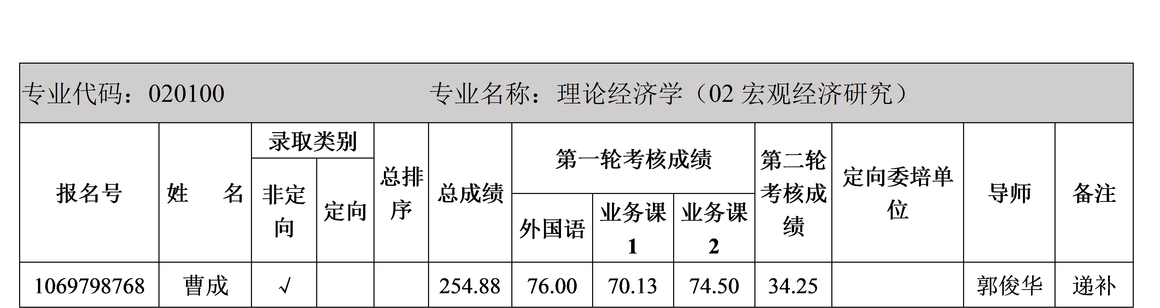根据《西北大学2020年博士研究生招生录取办法》和《776net必赢官网2020年博士研究生招生录取工作方案》的要求,因理论经济学宏观经济研究方向和工商管理技术经济及管理方向各有1位拟录取考生自愿放弃,现专业方向内各顺位递补1名,公示如下:
