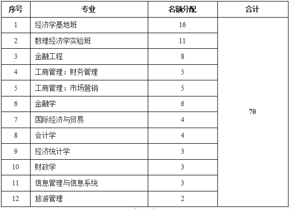 2024年我院各专业推免名额分配表