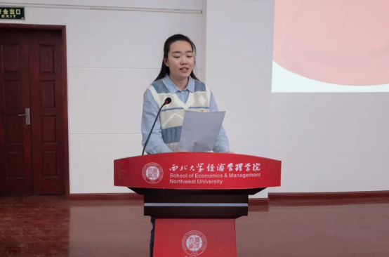 学院青马讲师团成员代表戴昶发言。她分享了自己在校青马班担任班主任的经历,鼓励同学们积极参与志愿服务工作中来,学院讲师团的老师们会认真备课授课,和大家一起紧贴时政、共研经典,努力引领马克思主义理论学习的潮流,秉承西大“公诚勤朴”的校训,在新的征程中心有所信、行稳致远,成为新时代坚定的青年马克思主义者。