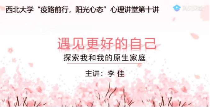 为进一步加强心理健康教育工作,提高同学们对心理健康问题的重视并给予同学们正确的引导,我院特别邀请心理健康教育中心李佳副教授为我院学生开展了题为《遇见最好的自己——探索我的原生家庭》的专题讲座。讲座于2020年6月17日下午在腾讯课堂举行