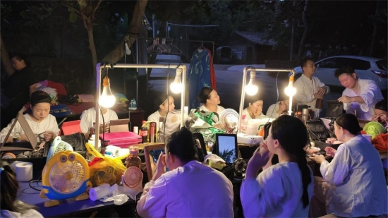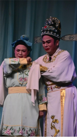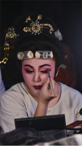 实践团调研发现,政府会在当地传统习俗活动庆祝时邀请琼剧团进行表演。实践团来到美任村后,在琼剧团团长的带领下从头到尾跟进了一遍琼剧的台前幕后。演员们需要提前到达现场进行准备,更换琼剧服、化妆以及准备道具;奏乐师也需要提前到达现场调试设备。而观看的群众主要是老年人,他们往往很早就来到前排占座,一般都是长辈带领小孩进行观看,年轻一辈停留观看的时间较短。