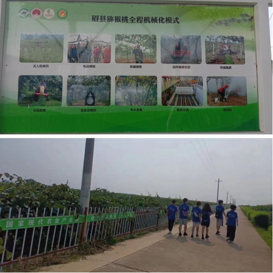 眉县猕猴桃采用“四改五提升” 技术,即:改土壤、改品种、改树形、改模式,提升基础、提升技术、提升品质、提升品牌、提升效益。在政府政策的支持与专业农学机构的帮助下,眉县的猕猴桃种植产业不断向现代化转型,以宁渠镇为例,当地的猕猴桃种植情况从原先各自为营,变为承包合作社经营,6000余亩猕猴桃种植地全部采用统一种植标准,总体规划猕猴桃品种种植分区。据实践团了解到,当地的猕猴桃可以比其他地区的猕猴桃平均每斤高5毛,为当地百姓带来巨大收益。