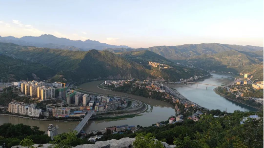 旬阳之所以被称为太极城,其实与其地形有关。从远处俯瞰旬阳市城区,呈现出典型的太极八卦图案,故称“太极城”。实践队队员登上宋家岭观景台,俯瞰旬阳城。崇山叠翠,峰高谷低,沟壑分明,八卦罗列,绿水绕廊,阴阳回旋,全部尽收眼底。