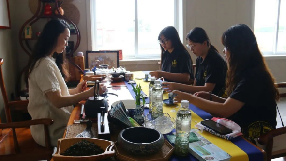 在负责人的盛情款待之下,实践团也有幸欣赏了海阳当地的茶道,也品尝到了留格绿茶。留格绿茶鲜醇爽口,有回甘,在茶盏之中感受到了海阳当地人民的热情好客。