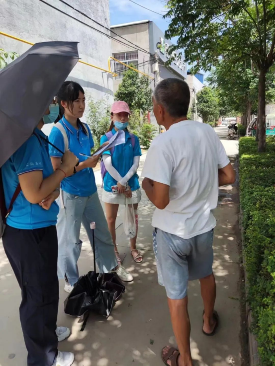 进入弋张村后,“相遇渭南,‘乡’见未来”小分队兵分两路,对弋张村村民进行调研走访。第一组队员调研了两位村民,一位是年纪60岁的环卫工人,每月工资1000元左右,孩子在外打工。家中田地被政府征用开设工厂,政府每月对家中60岁以上女性和65岁以上男性给予300元失地补贴。家中使用自来水和电力能源,她还会使用手机网络购物。当被问及对乡村振兴战略的看法时,她欣喜地表示,自己正切身着享受乡村振兴战略对家庭及整个村子带来的利益。