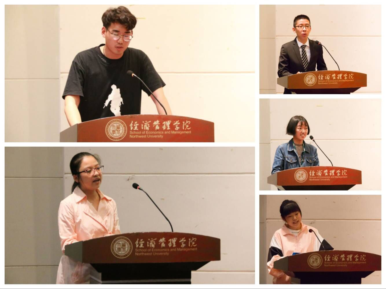 2017级各班选送的12位参赛选手积极准备,充满自信,紧扣“改革-创新-奋斗-成才”这一主题,以“数风流,看今朝”“笃行党的十九大精神,做新时代合格大学生”“点赞新时代”“我与祖国”“幸甚至哉”“星星之火可以燎原”“小确幸”“新时代的强大中国”“厉害了我的国”“梦在远方,路在脚下”“在新时代奋进成长”为题,联系国家改革发展创新成就,联系西北大学发展历史,联系经管精神传承,联系个人成长成才轨迹,或慷慨激昂,或舒缓动情,以饱满的感情和昂扬的精神状态歌颂党的伟绩,讴歌祖国发展,礼赞全新时代,畅想青春梦想,抒发校院情怀,通过不同的故事娓娓讲述经管青年的梦想和责任,点燃了现场观众的激情,引发了现场师生的共鸣,充分展现了经管青年新时代奋发有为的青年形象和追赶超越进取精神。