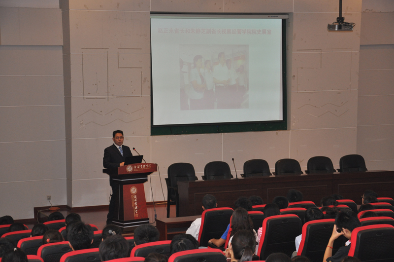 2011年8月30日上午,卢山冰教授应邀在金海恒业报告厅为我院2011级新生做了题为“回顾学院历史、融入辉煌文化”的新生入学教育首场讲座。讲座由经管学院团分委副书记史偉老师主持,共有480余名新生参加了讲座。