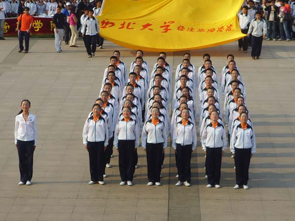 4月16日下午,西北大学第十三届“青春杯”新生广播体操大赛在南校区北广场隆重举行,经过19个代表队的激烈角逐,我院新生代表队脱颖而出,勇夺冠军。