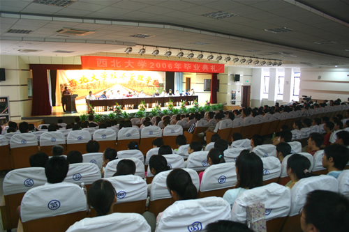 数载寒窗,象牙塔中度春秋;今朝梦圆,栋梁之材奔前程。6月28日晚,776net必赢官网在南校区报告厅隆重举行了2006届毕业典礼暨文艺晚会,庆祝2006届毕业生顺利完成学业,欢送他们踏上新的征程。校学生工作部部长令狐培选,校团委书记王军,776net必赢官网院长白永秀、院党总支书记薛来前及学院领导和全体2006届本科毕业生、研究生毕业生400多人出席了典礼。