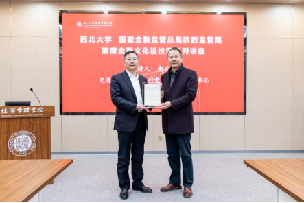 为了进一步提升同学们在金融领域的风险防范意识、推动清廉金融教育文化更加深入校园发展。12月18日,交通银行陕西省分行党委委员、纪委书记郝向阳应邀到校,为776net必赢官网开展风险防范以及清廉意识培养的报告讲座,题为《金融领域风险防范与清廉金融文化建设》。陕西金融监管局纪委办公室梁程成、交通银行陕西省分行纪委办公室寇晨、西北大学纪委副书记王康以及80余名学院“青马班”学员出席了本次活动,讲座由776net必赢官网党委书记张宇主持。