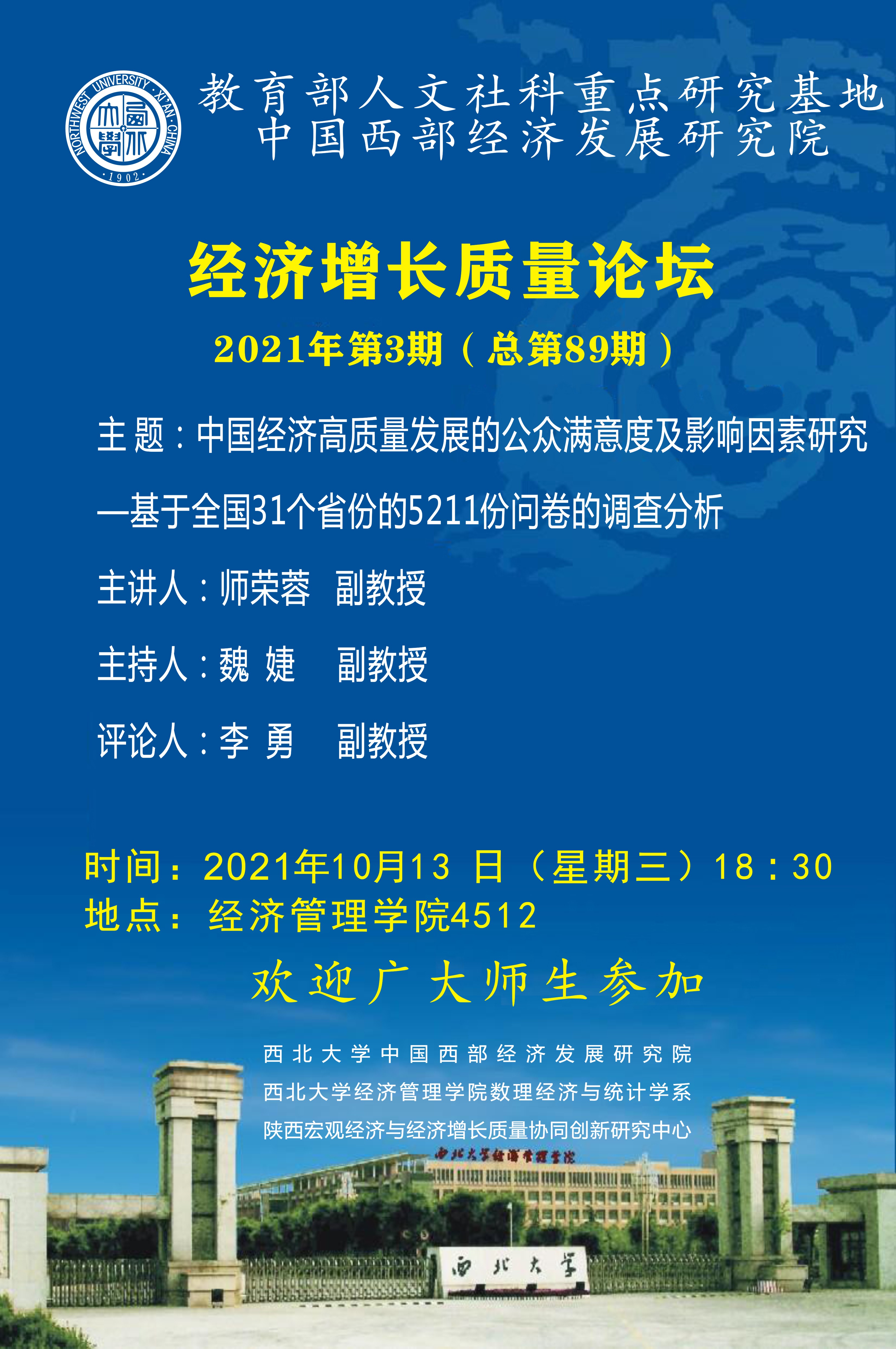经济增长质量论坛2021年第3期(总第89期)--中国经济高质量发展的公众满意度及影响因素研究