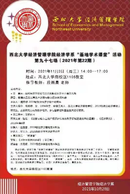 776net必赢官网经济学系“基地学术课堂”活动第九十七场(2021年第22期)