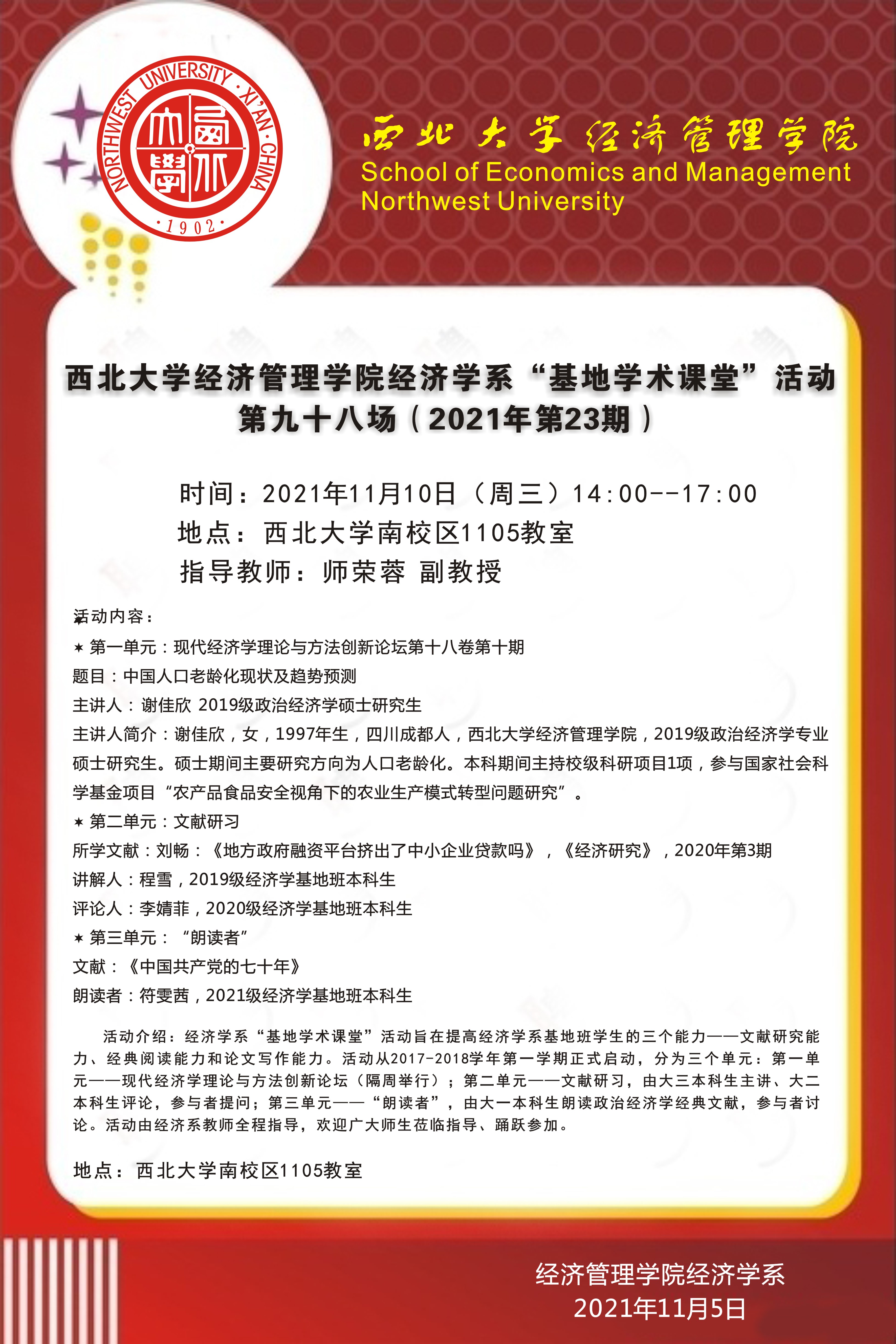 776net必赢官网经济学系“基地学术课堂”活动第九十八场(2021年第23期)
