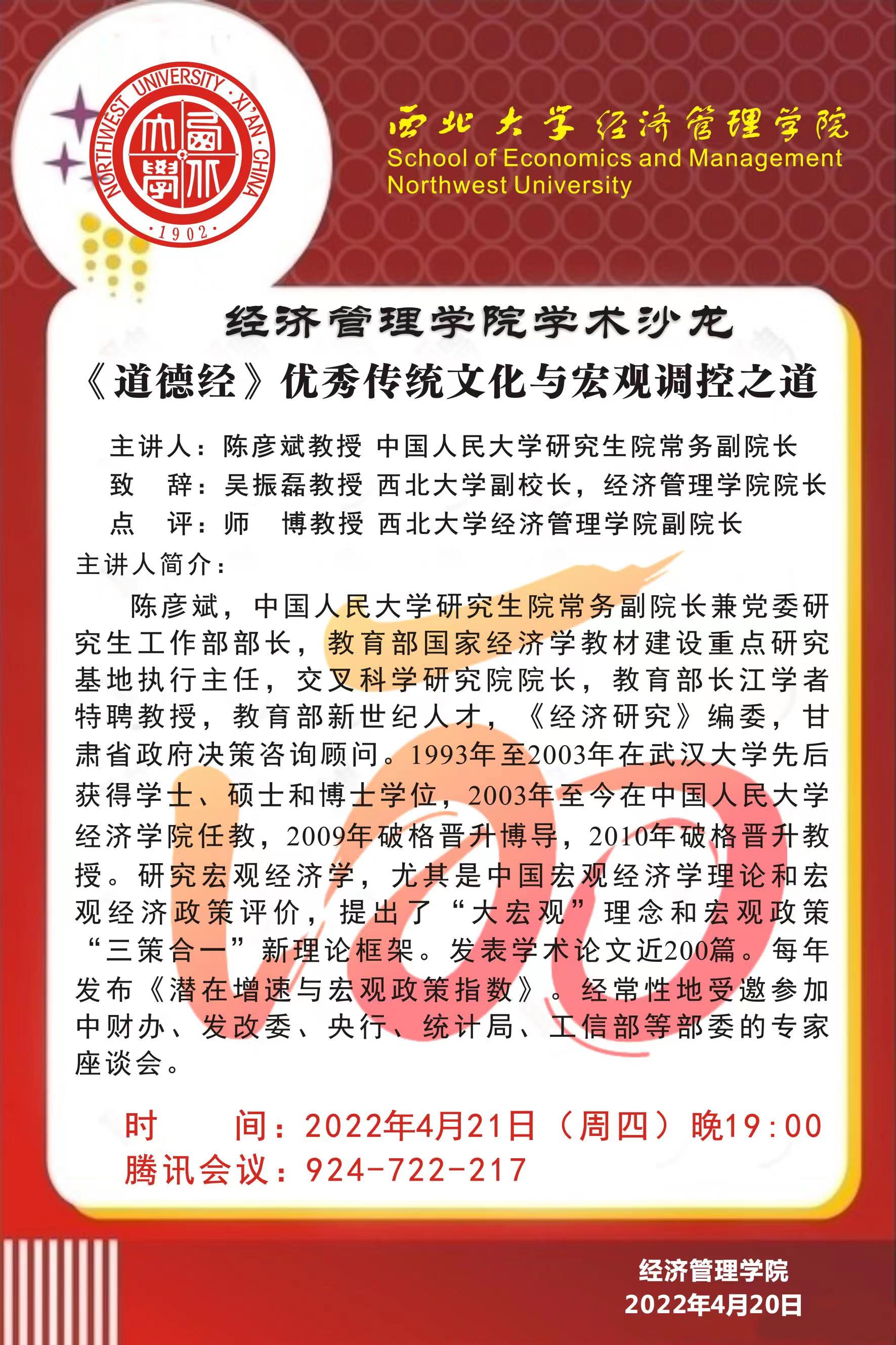 776net必赢官网学术沙龙—《道德经》优秀传统文化与宏观调控之道