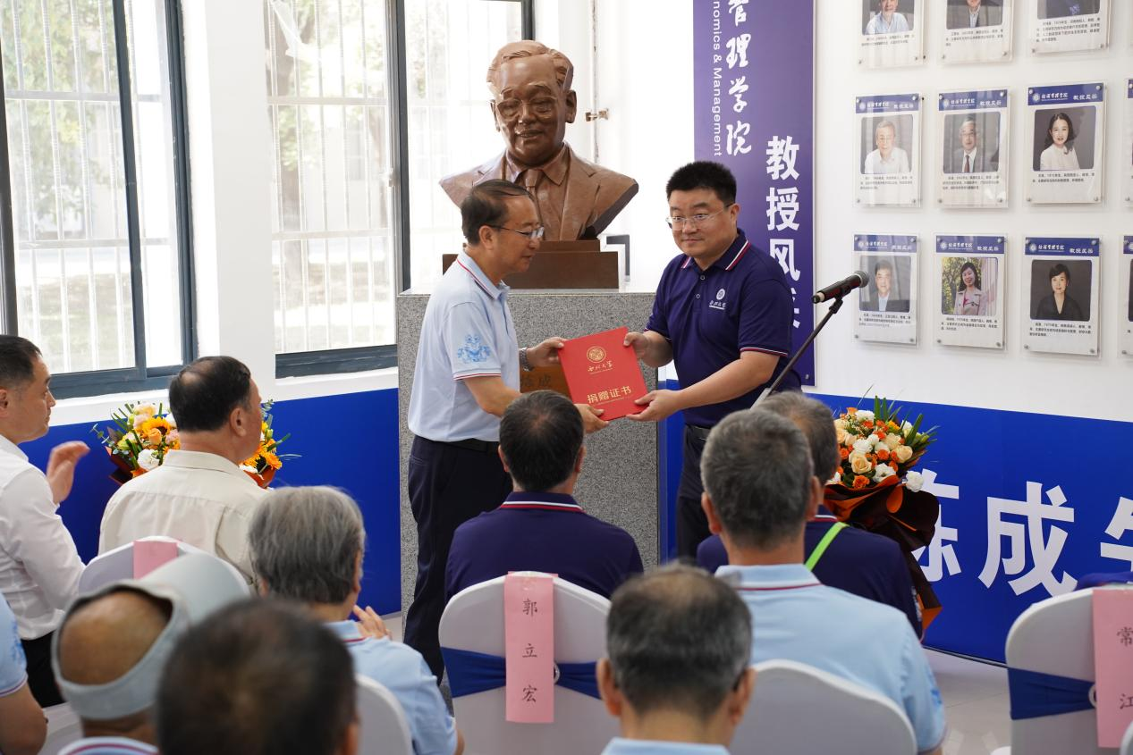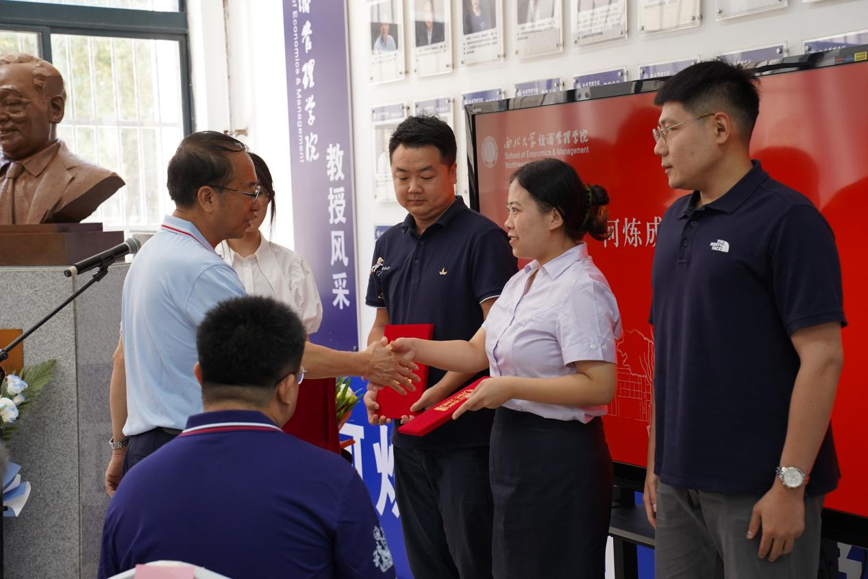 在活动中,由77级校友、北京大学国家发展研究院联合创始人张维迎教授,西北大学郭立宏校长,常江副校长和吴振磊副校长共同为何炼成先生塑像揭幕。吴振磊副校长为何炼成先生铜像捐赠集体——77级经济系颁发了捐赠证书。776net必赢官网院长马莉莉教授在致辞中指出,何先生治经世济民之学,提出了诸多具有创新性和前瞻性的理论观点;守教书育人之道,扎根西北七十多年,培养的学生共获得8次孙冶方经济科学奖;孜孜以求、笔耕舌耘,形成了独特的问题意识和方法论。她表示,全院师生将在学校的坚强领导下,不负先生之志,为把学院建设成为国内一流、国际知名的经管学院而不懈奋斗。